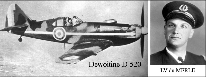 Circonstances du décès Le 12 mars 1943, le Dewoitine 520 n° 565 codé 2AC-1 piloté par le lieutenant de vaisseau du Merle participait à un exercice avec des troupes au sol qui exigeait une présentation à très basse altitude lorsque son appareil heurta un obstacle et s'écrasa quelques centaines de mètres plus loin, tuant son pilote.